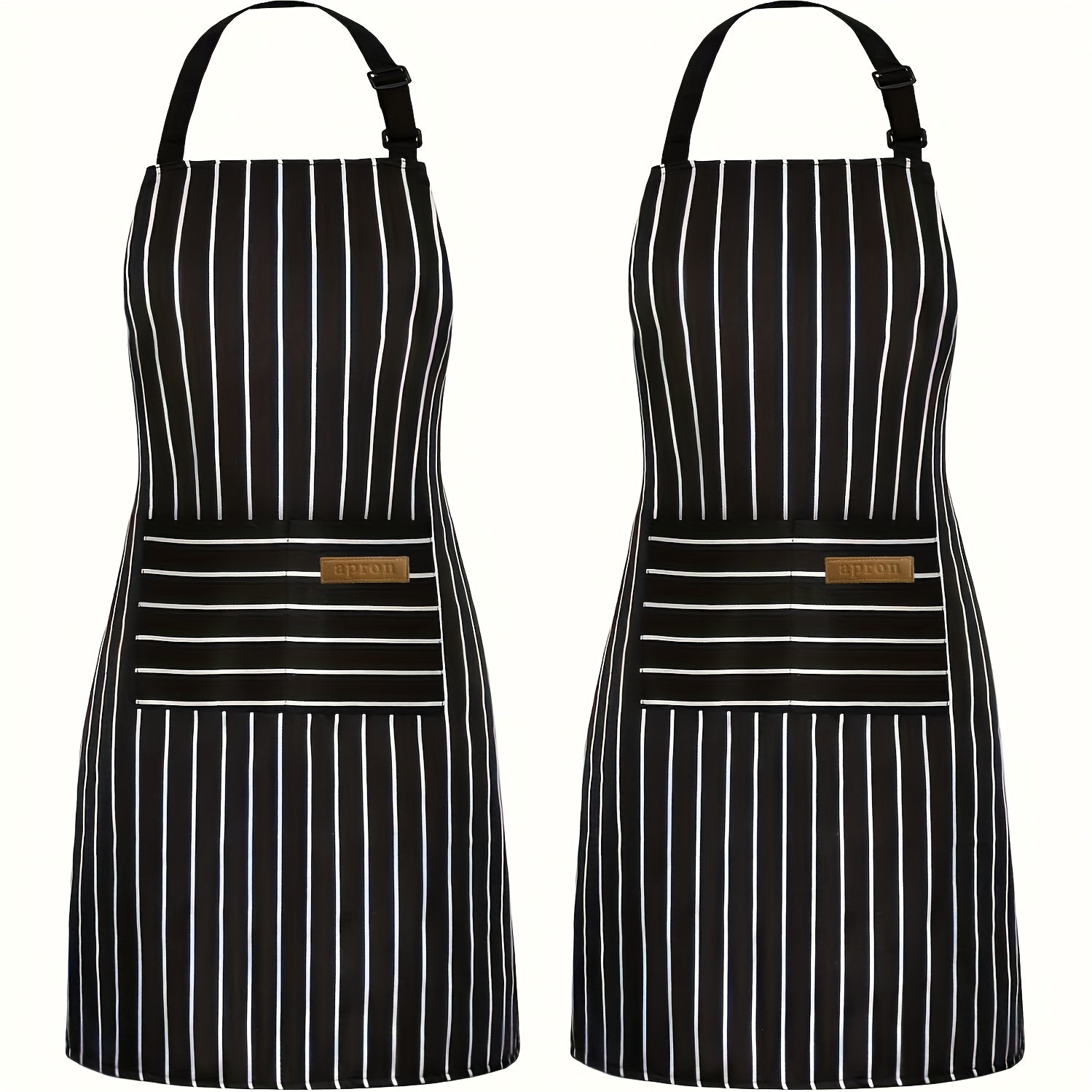 Bescherm je kleding tijdens het koken, bakken of knutselen met deze praktische set van 2 zwarte keukenschorten. De schorten hebben een stijlvol gestreept design en zijn gemaakt van stevig, olieafstotend geweven textiel. Dankzij de verstelbare nekband en lange strikbanden passen ze comfortabel voor zowel mannen als vrouwen. Met de handige zakken heb je kookgerei of accessoires altijd binnen handbereik. Perfect voor thuisgebruik, horeca of creatieve bezigheden zoals nagelstyling.