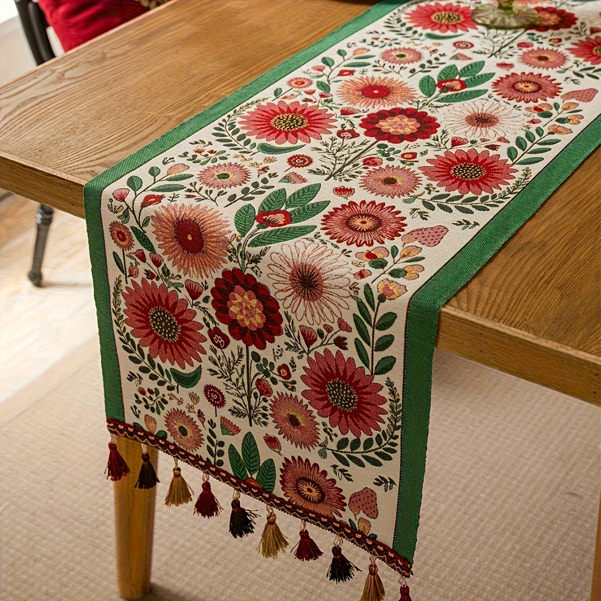 Deze kleurrijke boho tafelloper is een sfeervolle aanvulling op elke ruimte. Het geweven polyester is voorzien van een fijn bloemmotief en decoratieve afwerking, perfect voor koffietafels, theetafels of kastoppervlakken. Dankzij het duurzame materiaal is de loper geschikt voor dagelijks gebruik én feestelijke gelegenheden zoals bruiloften, vakanties en seizoensdecoratie. Combineerbaar met boho, landelijke en eclectische stijlen.