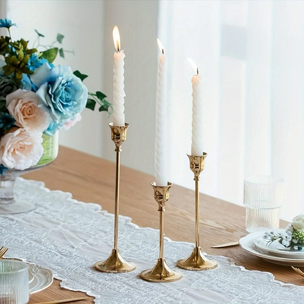Elegante gouden kaarsenstokken – 3 stuks met witte kaarsen voor romantische tafeldecoratie en feestdagen