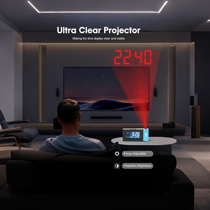 Deze multifunctionele projectieklok combineert een digitaal bureaureloge met een 180° roterende tijdprojectie, spraakgestuurde achtergrondverlichting en realtime weerinformatie. Ideaal voor gebruik in de slaapkamer, werkkamer of als seizoensdecoratie.