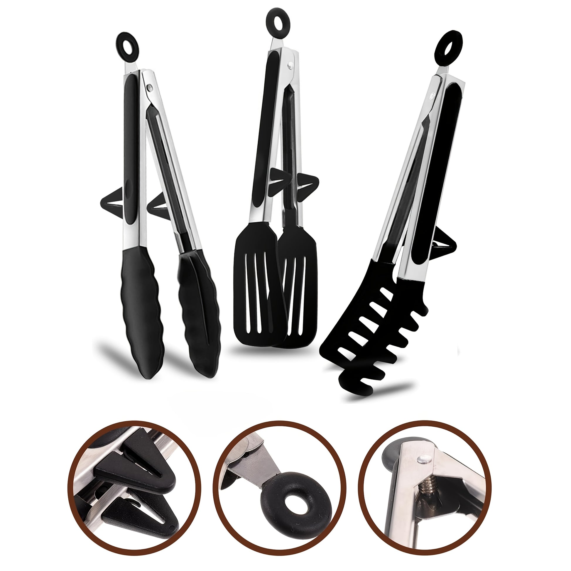 De GripMaster Tangenset bestaat uit 1 of 3 stuks multifunctionele kooktangen met siliconen koppen en stevige roestvrijstalen handgrepen. Ontworpen voor hoge temperaturen en intensief gebruik – van grillen tot bakken – bieden deze tangen maximale grip en veiligheid dankzij hun antislip afwerking en geïntegreerde beugels. Ideaal voor het omdraaien van steak, vis, burgers, pasta en brood.