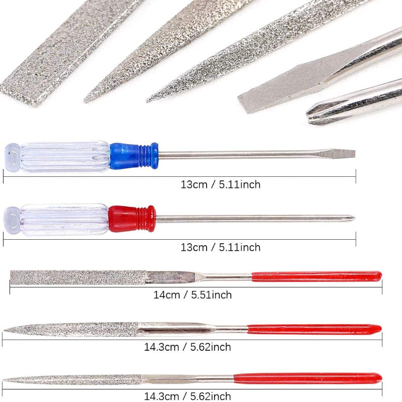 • Inclusief pincetten, vijlen, snijmes, liniaal en meer
