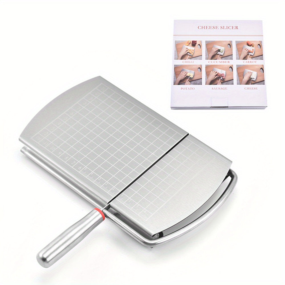 Deze heavy duty kaassnijder is ontworpen voor precisie en kracht in de keuken. Het roestvrijstalen frame is voorzien van een snijdraad en duidelijke maatverdeling, zodat je moeiteloos gelijkmatige plakjes kaas, boter of deeg kunt snijden. De stevige constructie biedt stabiliteit en controle, terwijl het gladde oppervlak eenvoudig schoon te maken is. Een onmisbaar keukengadget voor liefhebbers van koken, bakken en serveren.
