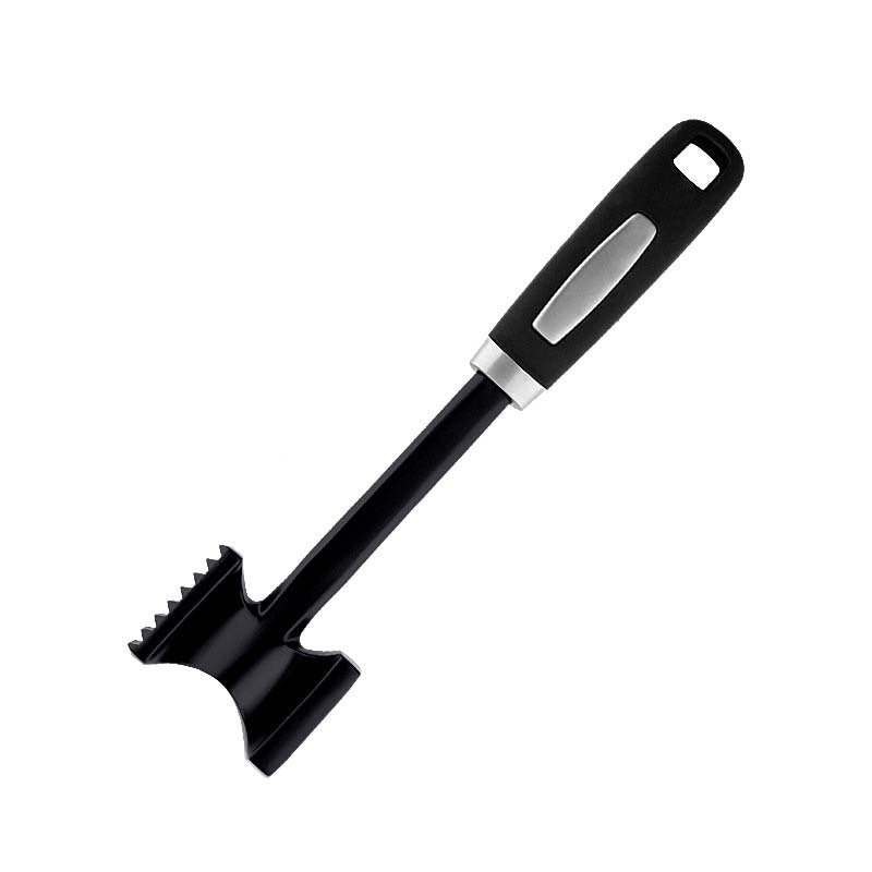 De TenderForce Vleeshamer is een robuust keukengereedschap van roestvrij staal, ontworpen voor het vermalsen van vlees zoals varkenskoteletten, biefstuk en gevogelte. Met een vierkante, dubbelzijdige kop – vlak aan de ene kant en getextureerd aan de andere – biedt deze hamer optimale controle voor elke bereiding in de westerse keuken. Voedselveilig, ergonomisch en klaar voor actie.